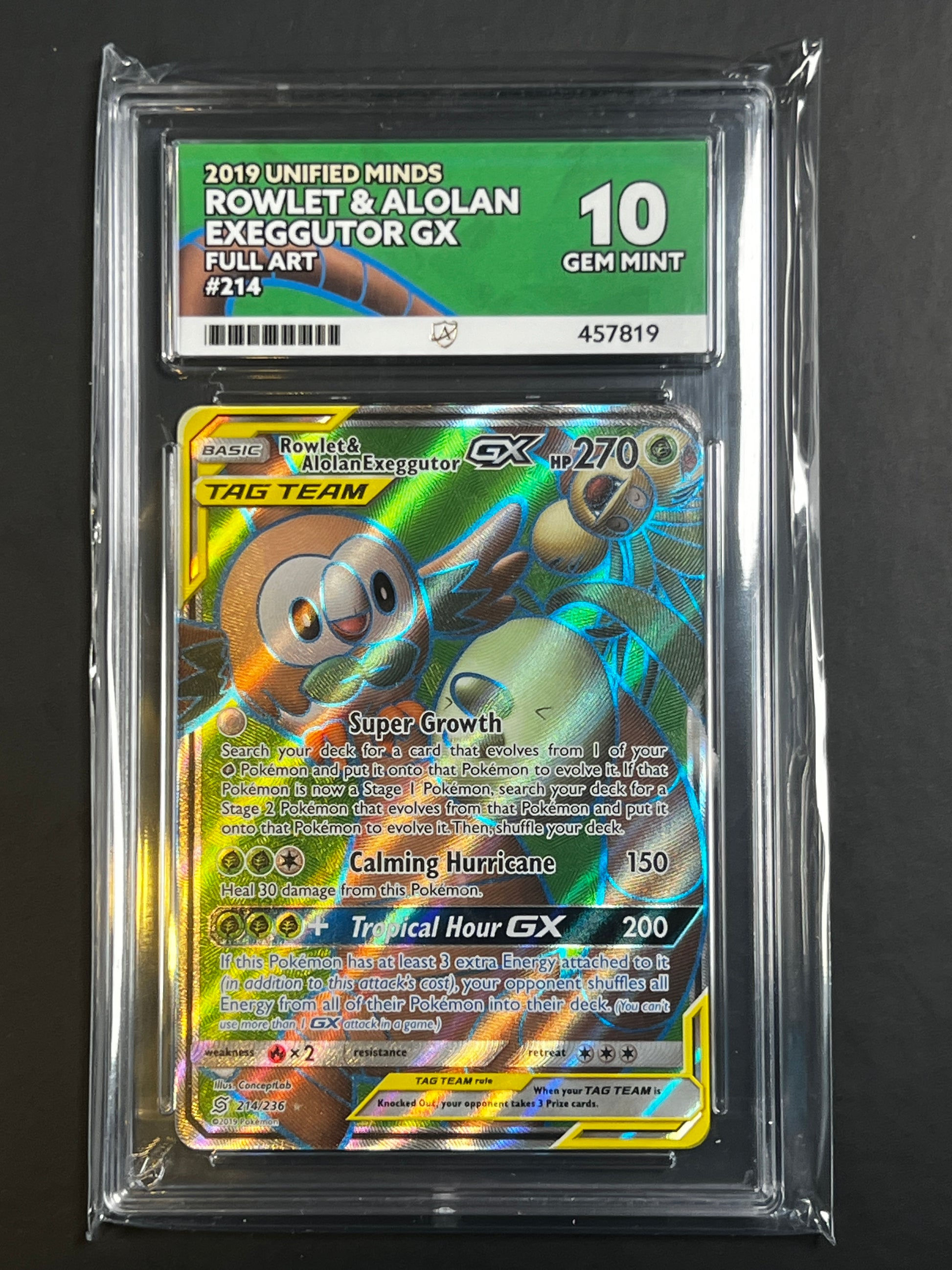 ACE 10 - 2019 - Rowlet & Alolan Exeggutor GX - Unified Minds - 214/236 - Full Art